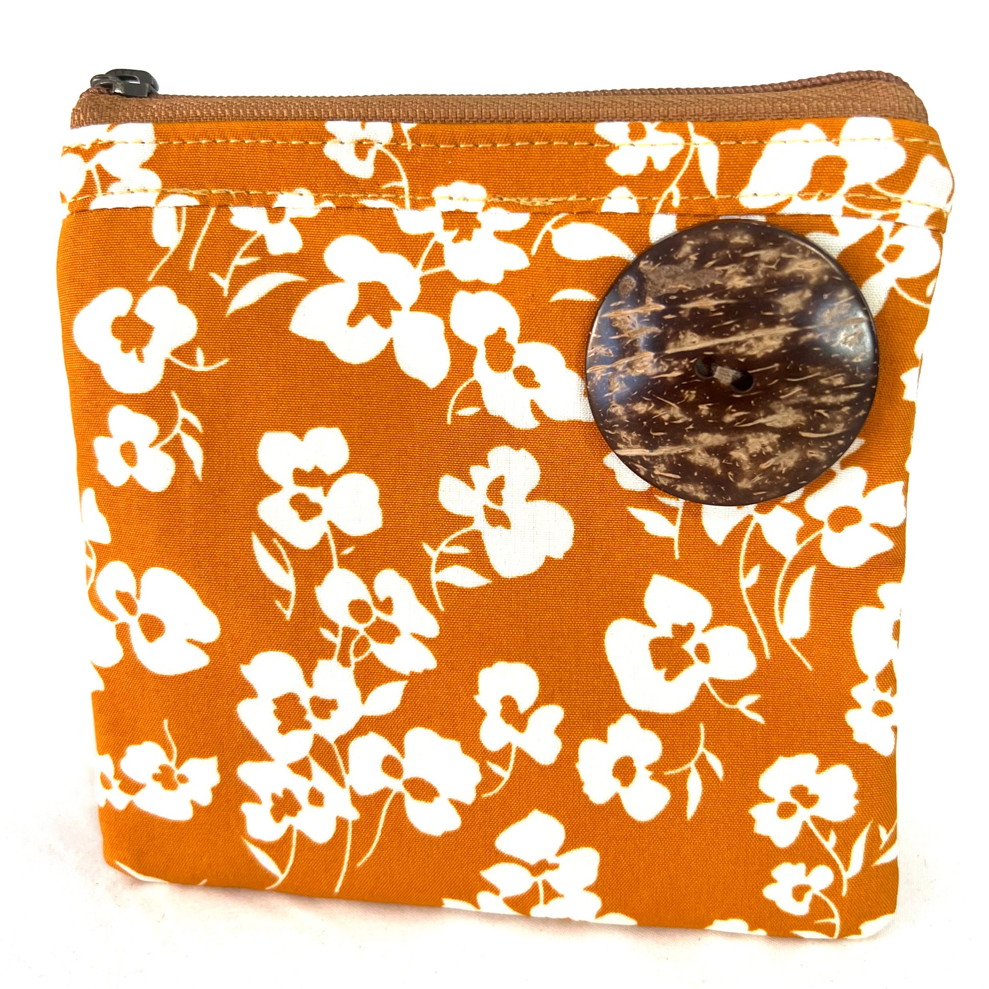 The adorable coconut button is the focus of this little pouch. It is our largest coin purse and can hold coins, cables, makeup, keys, you name it.